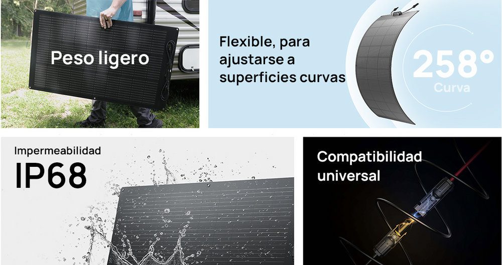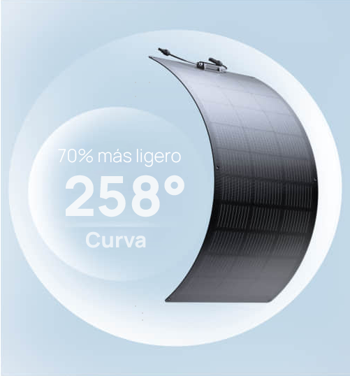O nosso painel solar flexível é excecionalmente leve e 70% mais leve do que os painéis tradicionais, o que o torna prático para transportar e montar. Dobra-se facilmente até 258 graus e adapta-se à forma única da tua caravana ou carrinha sem afetar a entrada de energia solar.