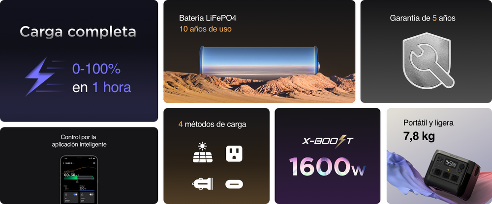 Carregamento solar (x1 painel solar portátil de 220W): 3,5 horas