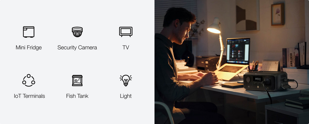 Quando ocorre uma falha de energia, a tua tomada CA mudará para o fornecimento da RIVER 3 num impercetível espaço de 20 ms. Mantém os eletrodomésticos essenciais a funcionar, preservando o armazenamento de alimentos, a segurança e a comunicação. Experimenta uma comutação automática e fluida para uma tranquilidade contínua.
