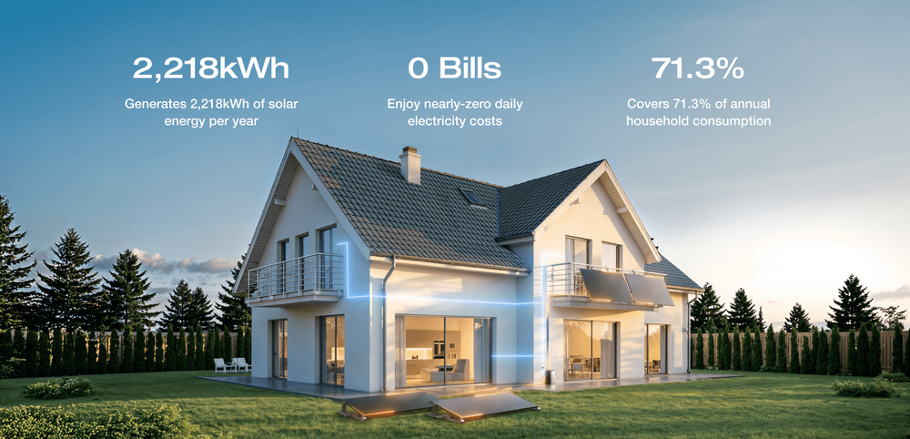 Quando o sol nasce, o EcoFlow STREAM Ultra começa de imediato a captar energia solar para a tua casa, armazenando automaticamente qualquer excedente. À noite, essa energia armazenada alimenta os teus aparelhos, diretamente ou através da rede. Com uma capacidade de geração anual até 2.218 kWh, cobre cerca de 71,3% das necessidades energéticas de uma casa, reduzindo a fatura da luz praticamente a zero¹.
