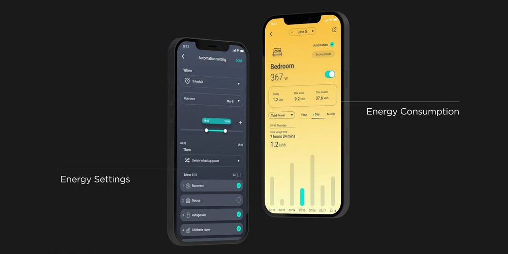 Controle todos os seus circuitos domésticos integrados através da aplicação EcoFlow e obtenha uma visão global dos seus hábitos de consumo de energia. Descubra funcionalidades para personalizar a sua utilização de energia. Pode optimizá-los para energia auxiliar, poupar dinheiro ou personalizar as opções para programar a utilização de energia de acordo com as suas necessidades. Uma vez configurado, pode controlar a fonte de energia que a sua casa utiliza, tudo a partir do seu telemóvel.