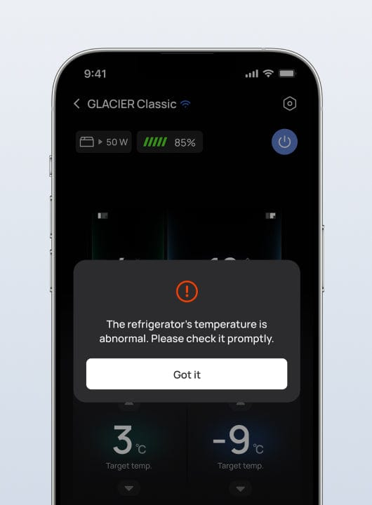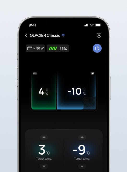 Monitoriza, controla e personaliza remotamente o teu GLACIER através da app EcoFlow. Desde o estado da bateria em tempo real até alertas de deteção de fugas de água, mudanças de modo e desligamentos programados — tudo está a um toque de distância no teu telemóvel.